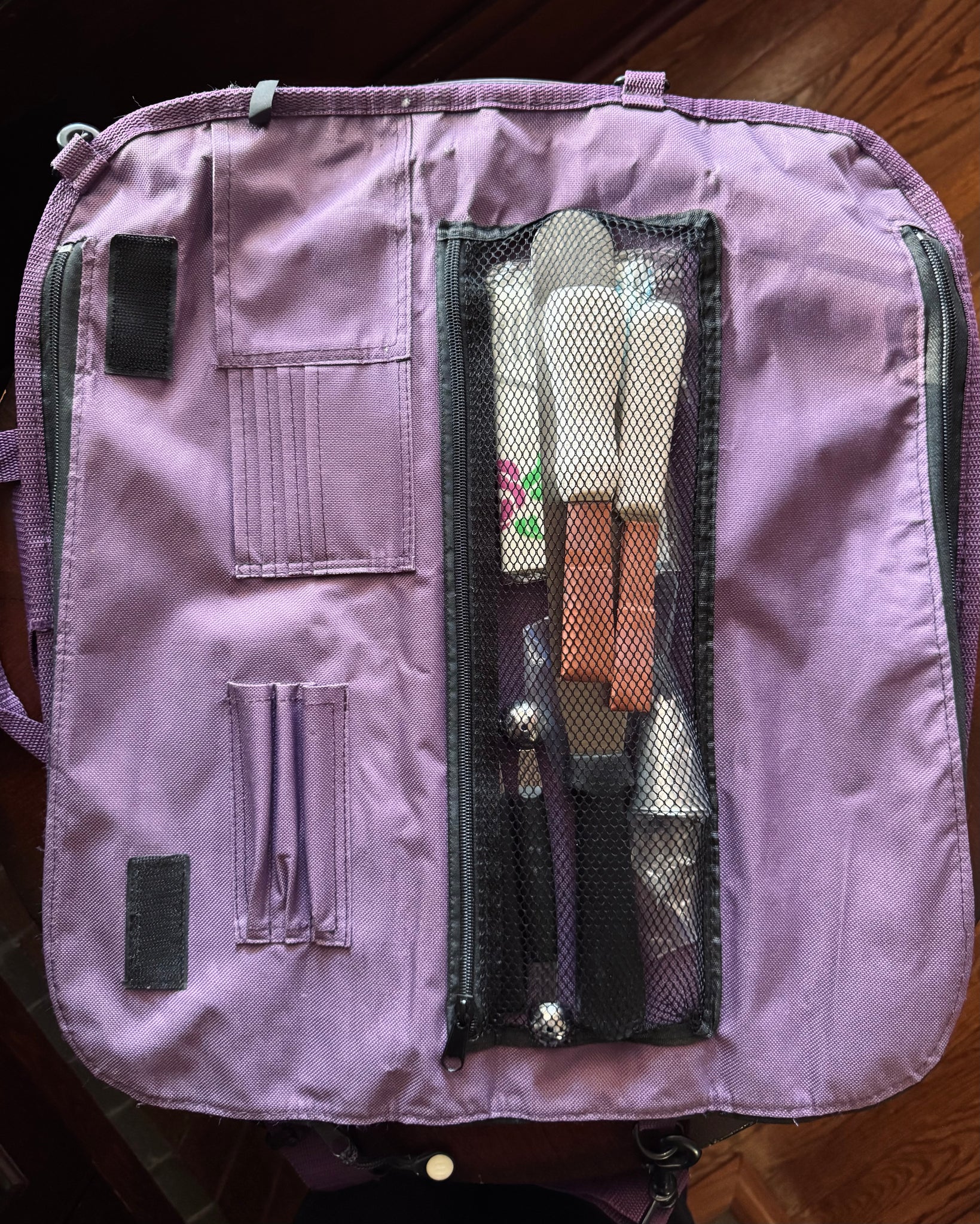 Set contains- Knife roll, 9” chef’s knife, 10” slicer, 8” serrated bread knife, 6” stiff boning knife, 6” carving fork, 5” utility knife, 3.5” paring knife, 3” birds beak paring, oyster knife, clam knife, lg and sm melonballers, 10” flat spatula, 6 pc pastry tips